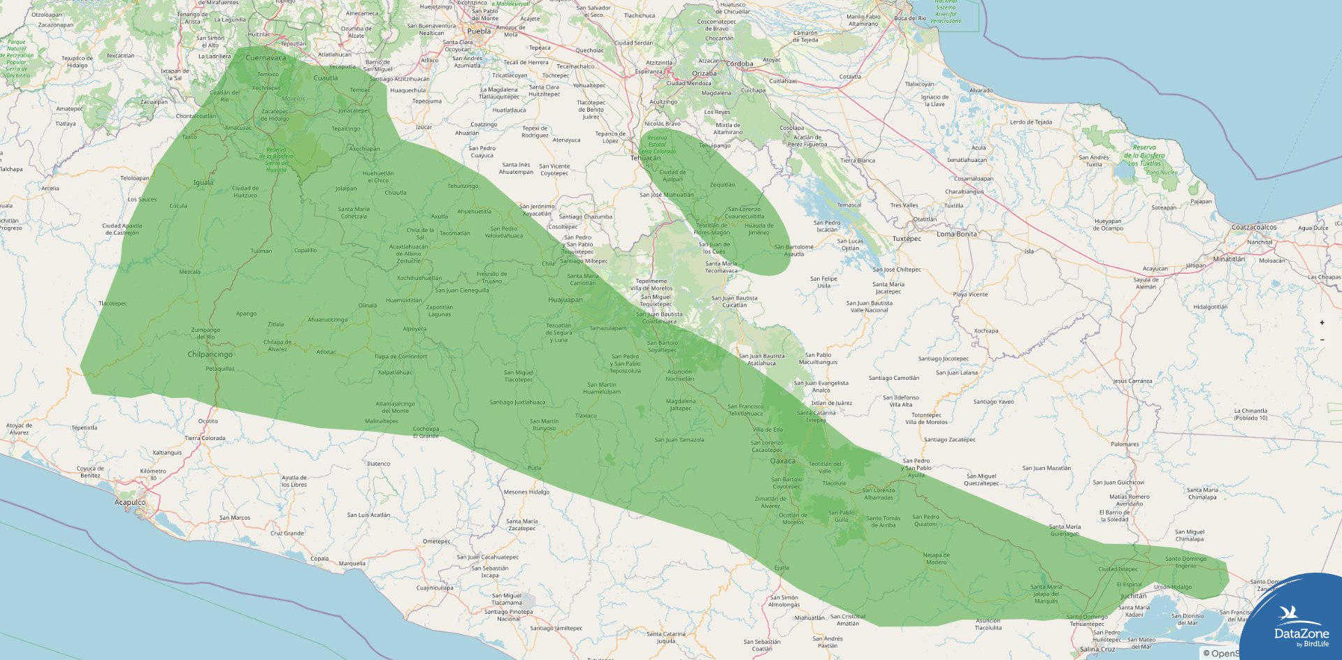 Range: Endemic to south‑central Mexico, from central Guerrero and southern Puebla south to Oaxaca, mainly in interior valleys and adjacent slopes