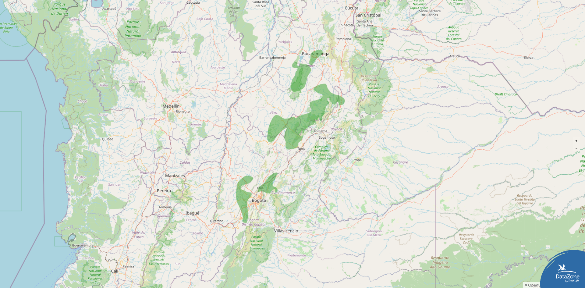 Range: West slope of the Eastern Andes of Colombia from southeastern Santander and western Boyacá south into western Cundinamarca, plus both slopes of the Serranía de los Yariguíes in Santander.