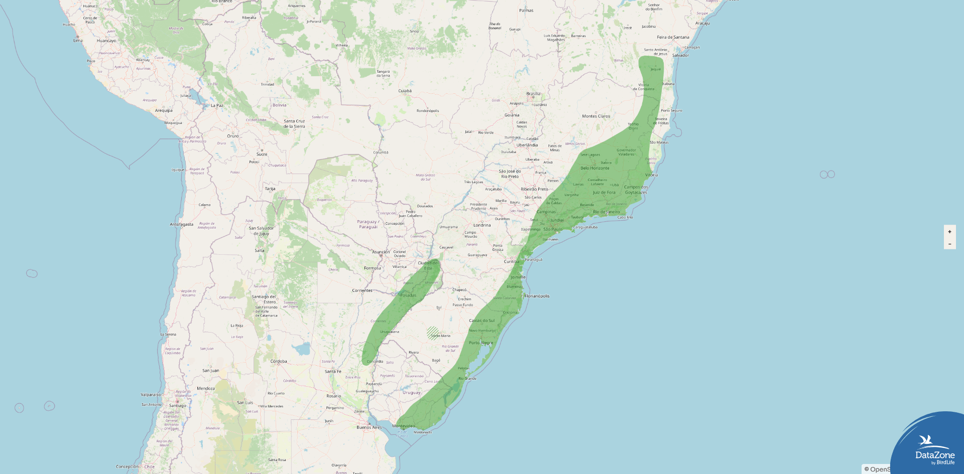 Range: Eastern and southeastern Brazil from Bahia south through Rio Grande do Sul, and locally in eastern Paraguay, northeastern Argentina, and eastern Uruguay.
