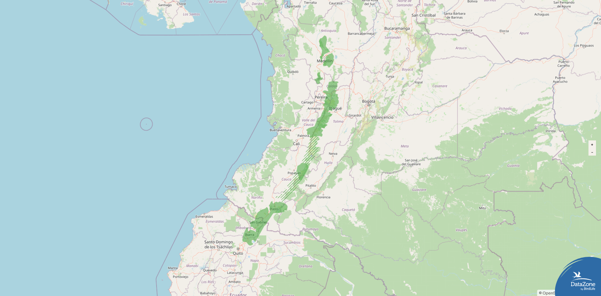 Range: Central Andes of Colombia (Tolima and surrounding departments) south to Imbabura Province in northwestern Ecuador