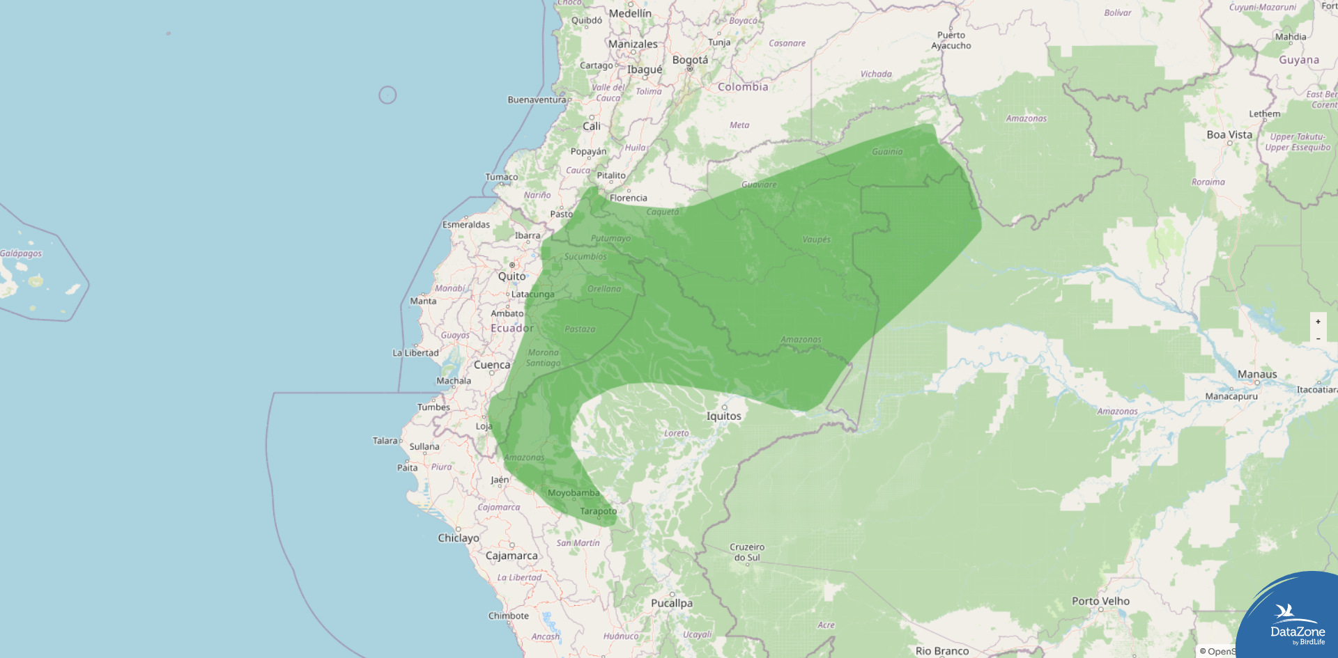Range: Western Amazonia in southeastern Colombia, eastern Ecuador, northeastern and eastern Peru, and extreme northwestern Brazil (upper Rio Negro and adjacent areas)