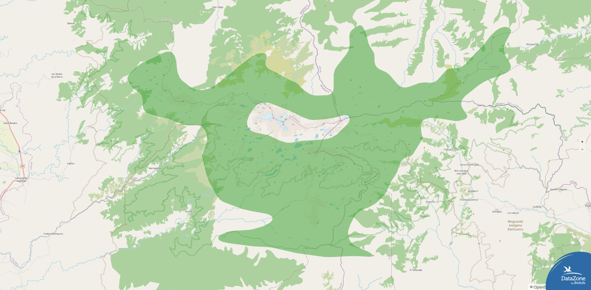 This species is endemic to the Sierra Nevada de Santa Marta in northern Colombia, one of the world’s most isolated coastal mountain systems. Within this massif it occupies tiny fragments of high‑elevation páramo, with recent confirmed records from a very small area around the Sevilla Lakes region and nearby slopes. Historical data and recent surveys indicate an extremely small range and severe habitat degradation from repeated burning and grazing, contributing to its Endangered status.