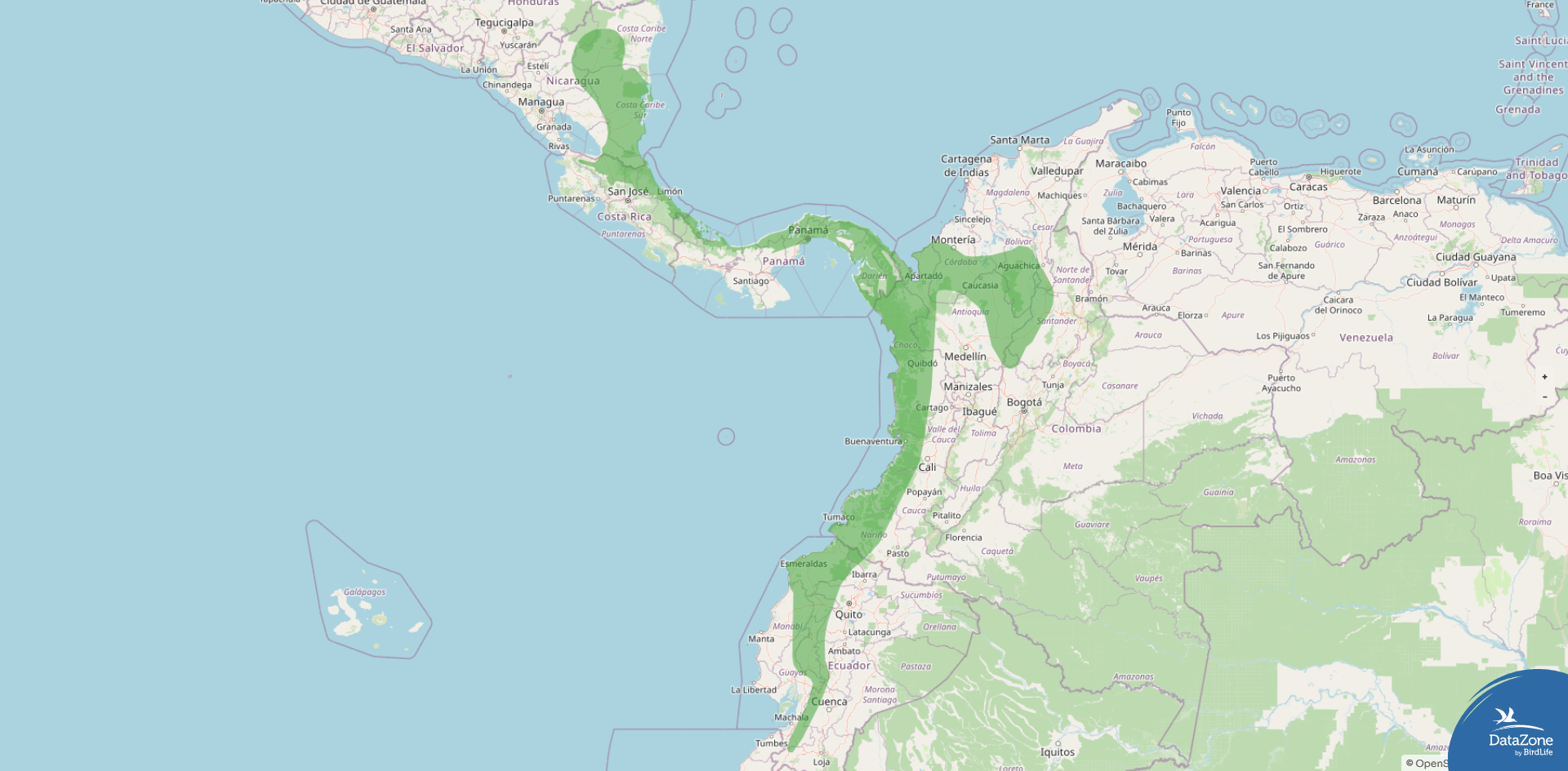 Range: Caribbean slope from southeastern Nicaragua through Costa Rica and Panama, and on the Pacific slope of Panama into western Colombia and western Ecuador.
