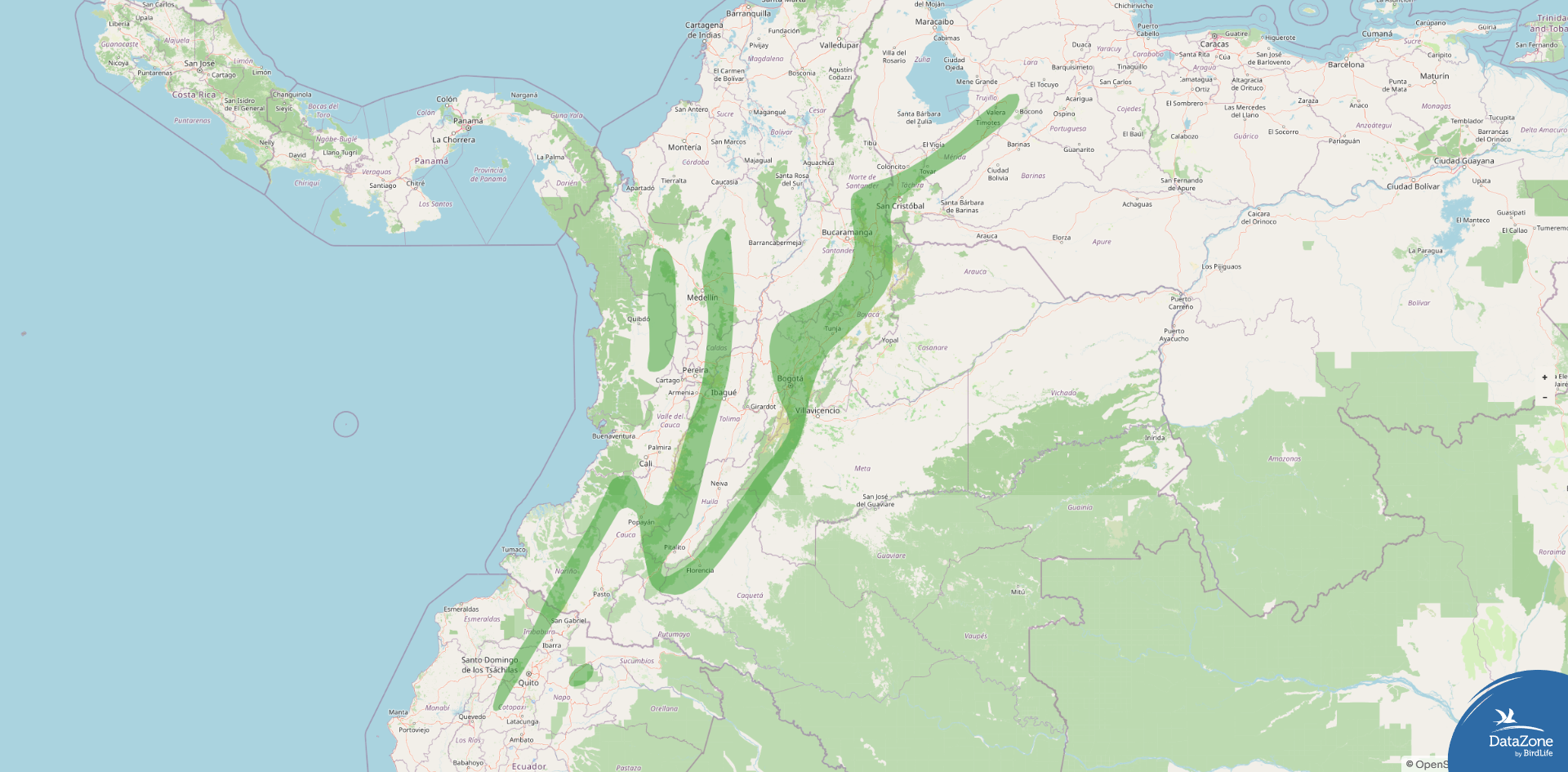 Range: Andes of western Venezuela (Mérida) and all three Andean ranges of Colombia, south along the western Andean slope into Ecuador to Cotopaxi, with local occurrence on the eastern slope of Ecuador (Napo).