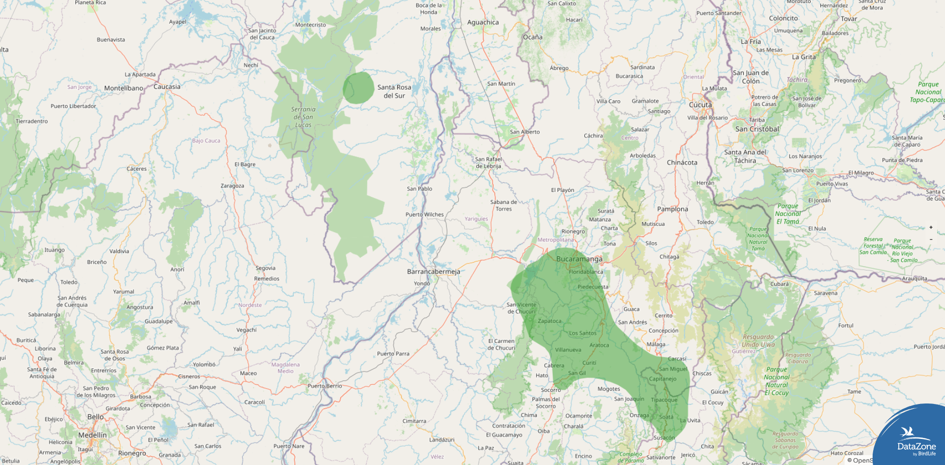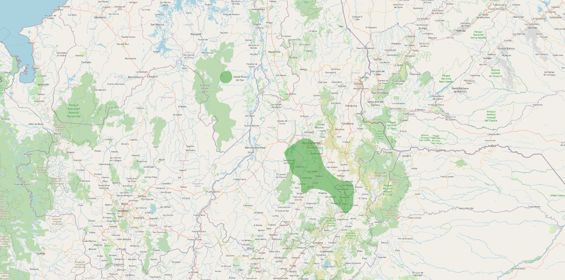 Range: Endemic to Colombia, restricted to drier parts of the Magdalena Valley and adjacent Andean slopes, especially the Chicamocha, Suárez, and Chucurí River valleys on the west slope of the Eastern Andes.