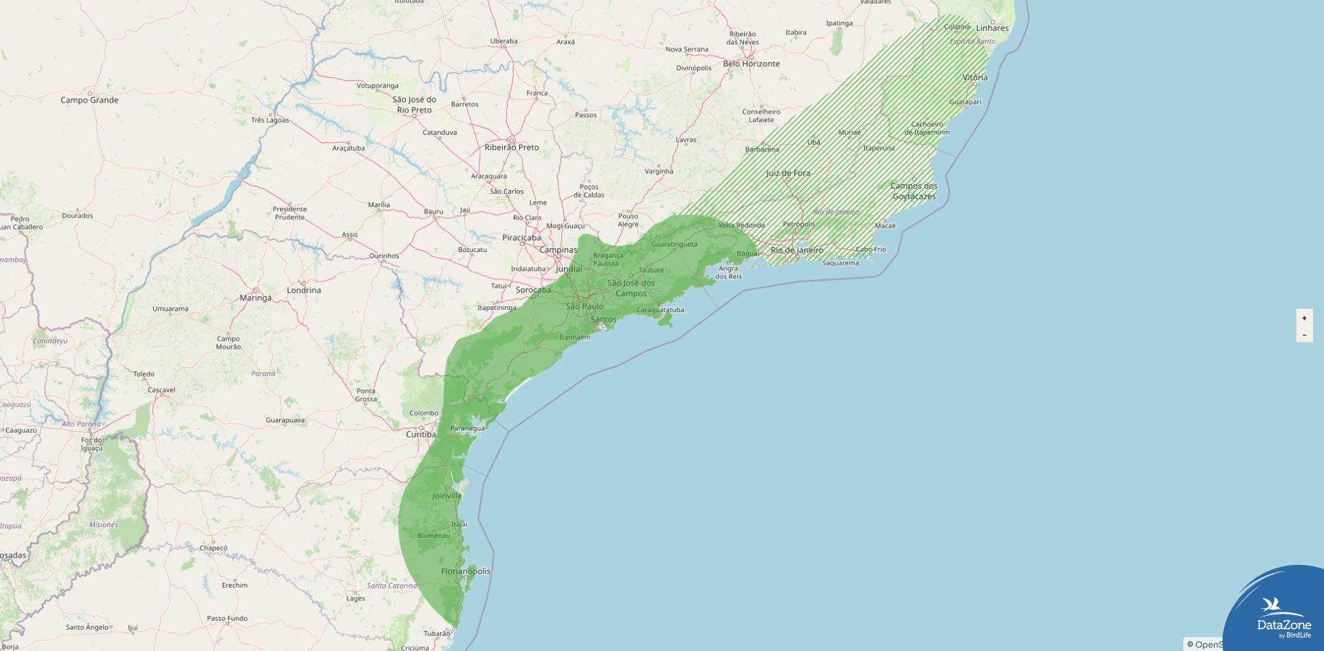 From Espírito Santo south through Rio de Janeiro and São Paulo