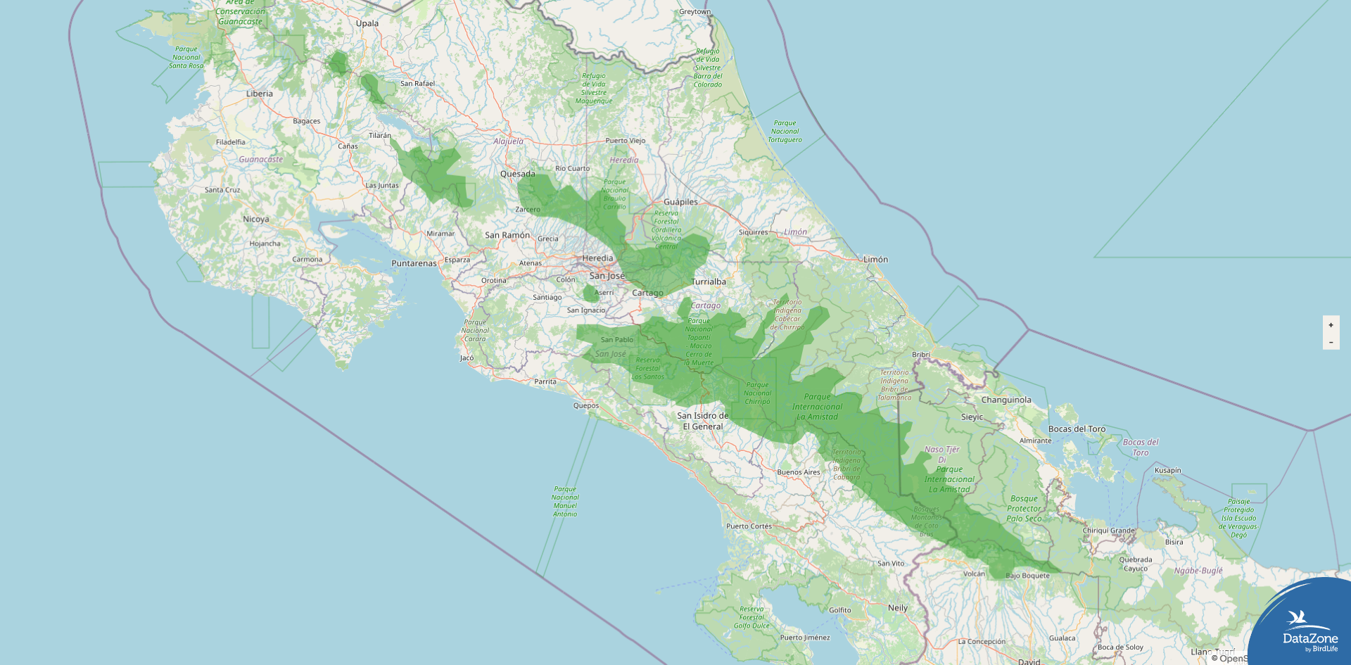 Range: Highlands of Costa Rica (Cordillera de Guanacaste, Cordillera de Tilarán, Cordillera Central, and Cordillera de Talamanca) south into western Panama (Bocas del Toro and Chiriquí).