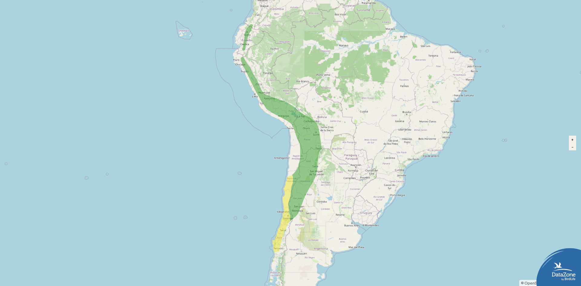 Range: Along the Andes from southern Ecuador and Peru south through Bolivia and Chile to northwestern Argentina (south to Mendoza), from near sea level in some coastal zones up to high Andean valleys and slopes.