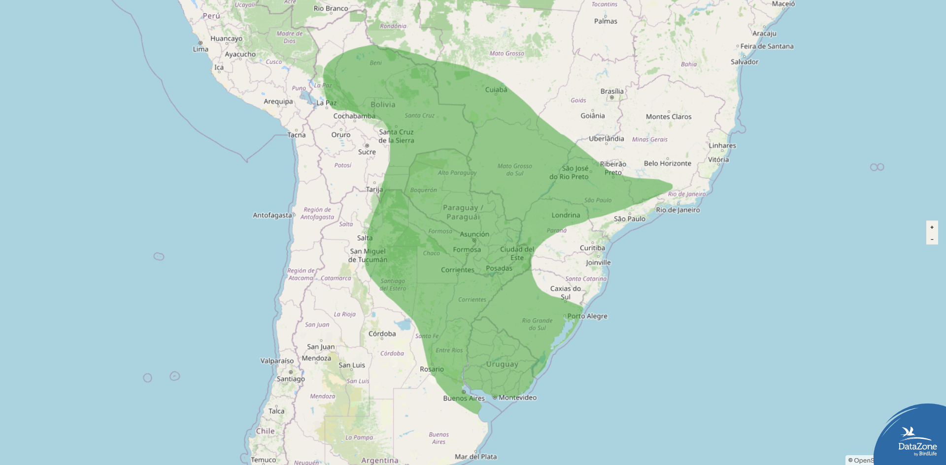 Range: Northeastern and south‑central Bolivia, central and southeastern Brazil, Paraguay, Uruguay, and northern Argentina