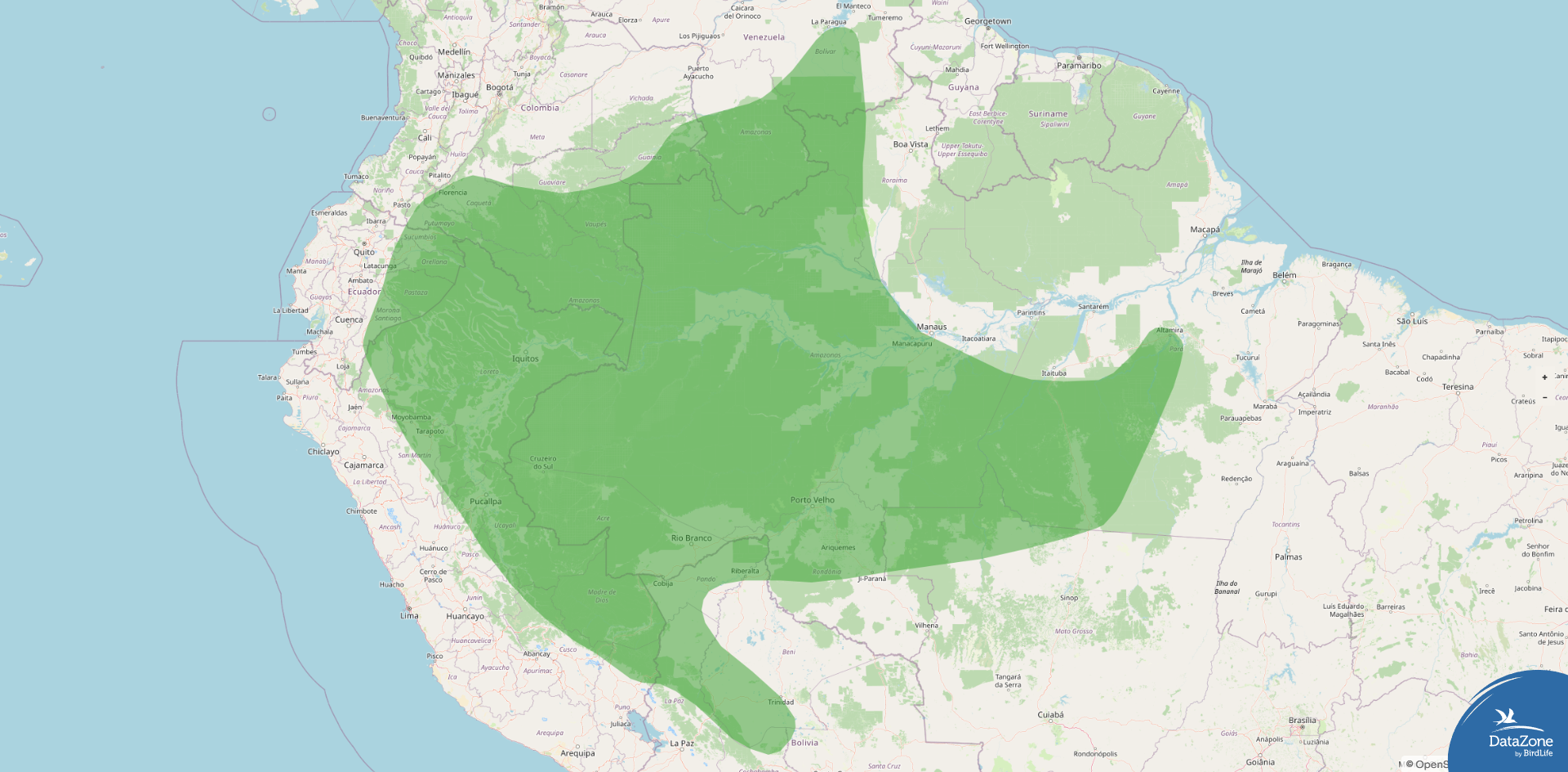Range: Southern Venezuela south through central Colombia, eastern Ecuador and Peru to Bolivia, and across a large area of northwestern Brazil east to Pará