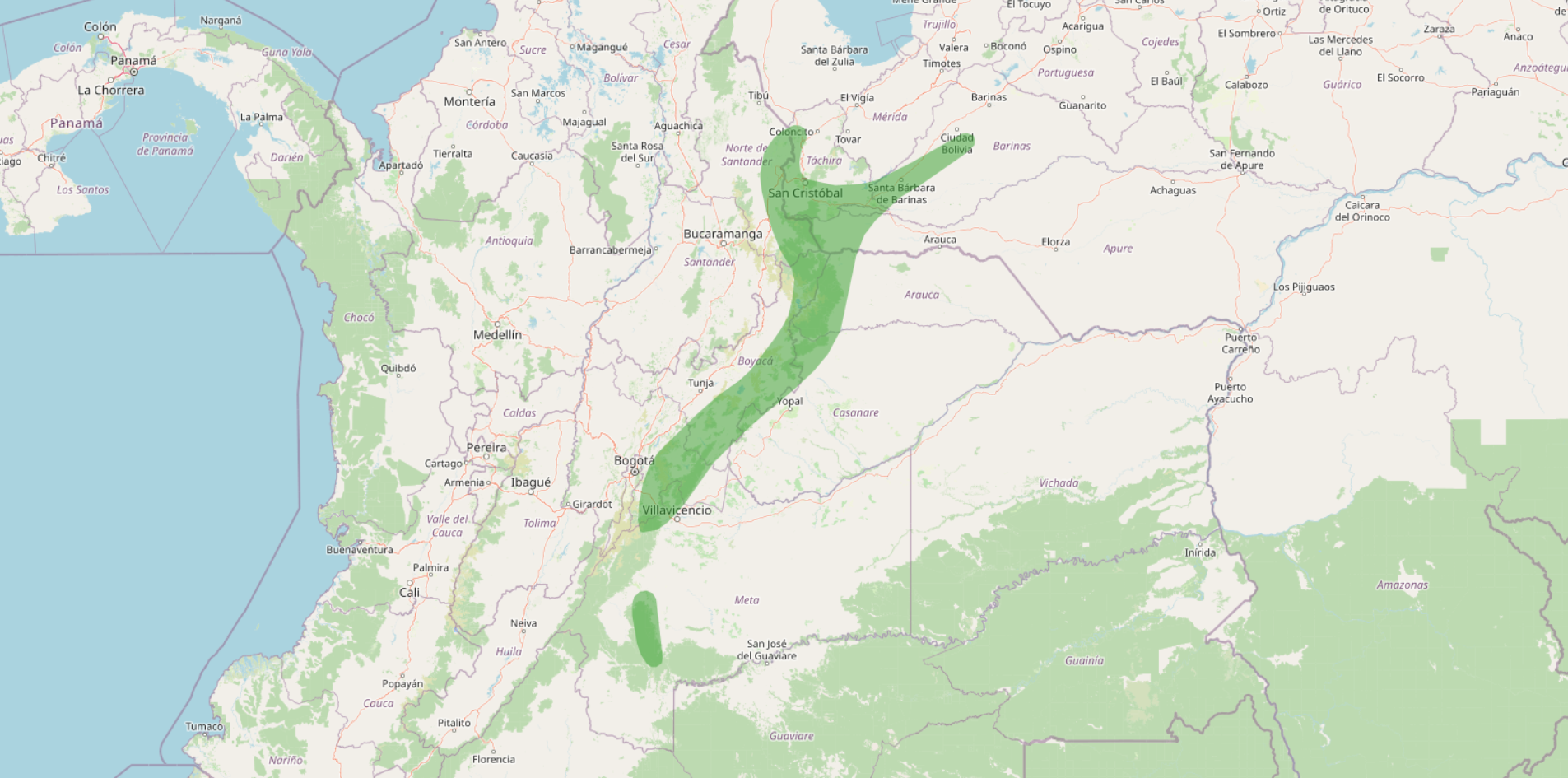 Range: Eastern slope of Colombia’s Eastern Andes and adjacent foothills, and the Andes of western Venezuela.