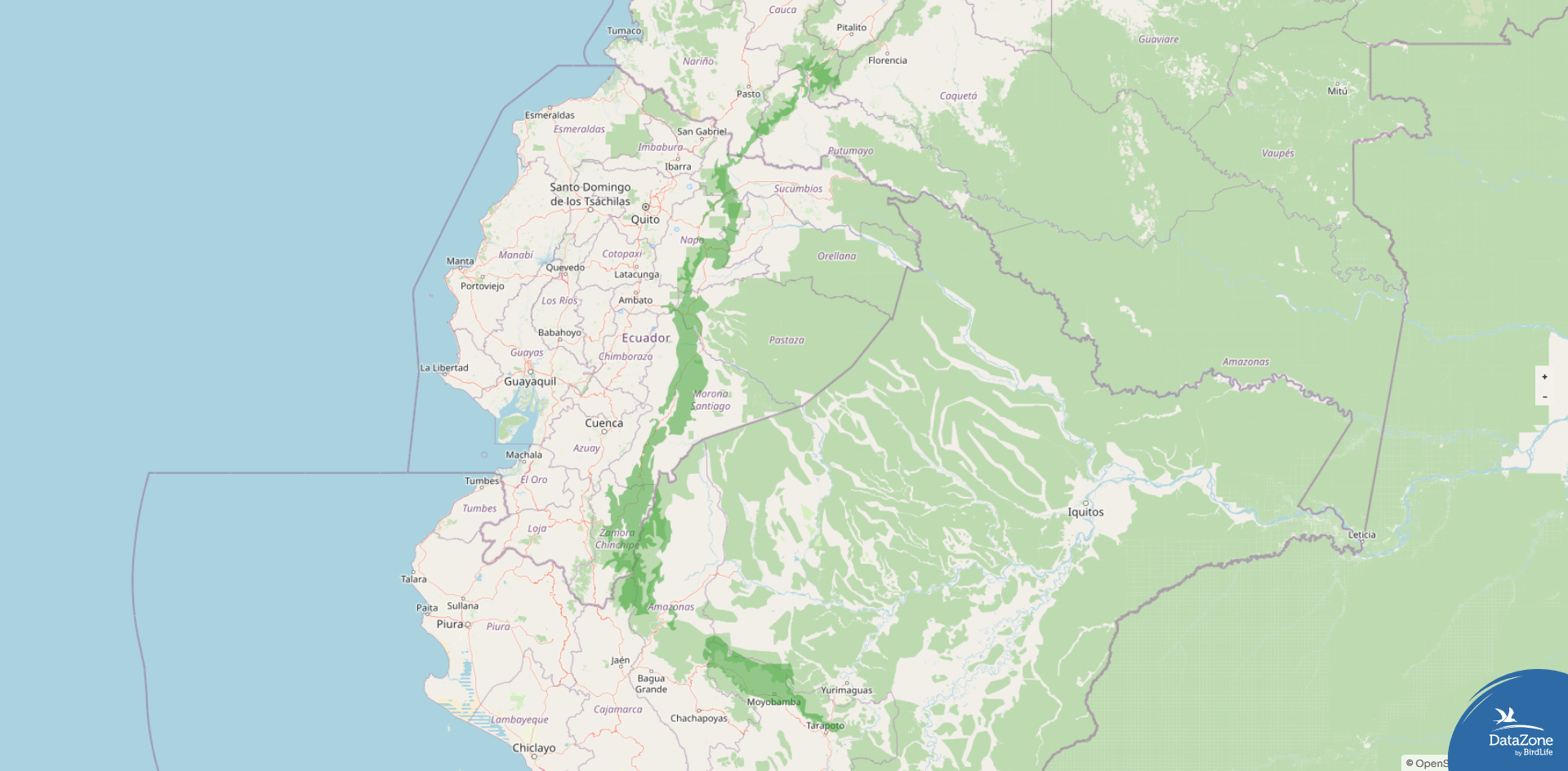 Range: East slope of the northern Andes from southern Colombia through eastern Ecuador into northeastern Peru (as far south as San Martín).