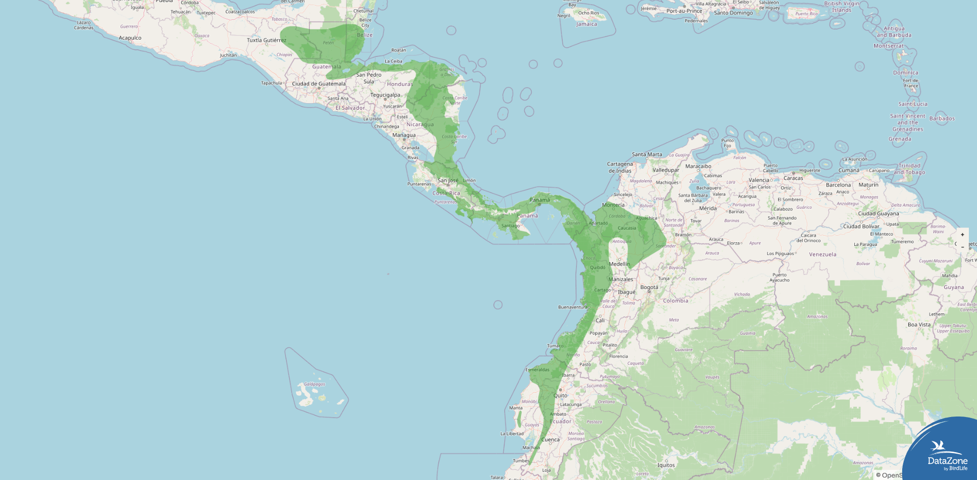 Range: From southeastern Mexico south through Belize, Guatemala, Honduras, Nicaragua, Costa Rica, and Panama to the Pacific slopes of Colombia, Ecuador, and far northern Peru