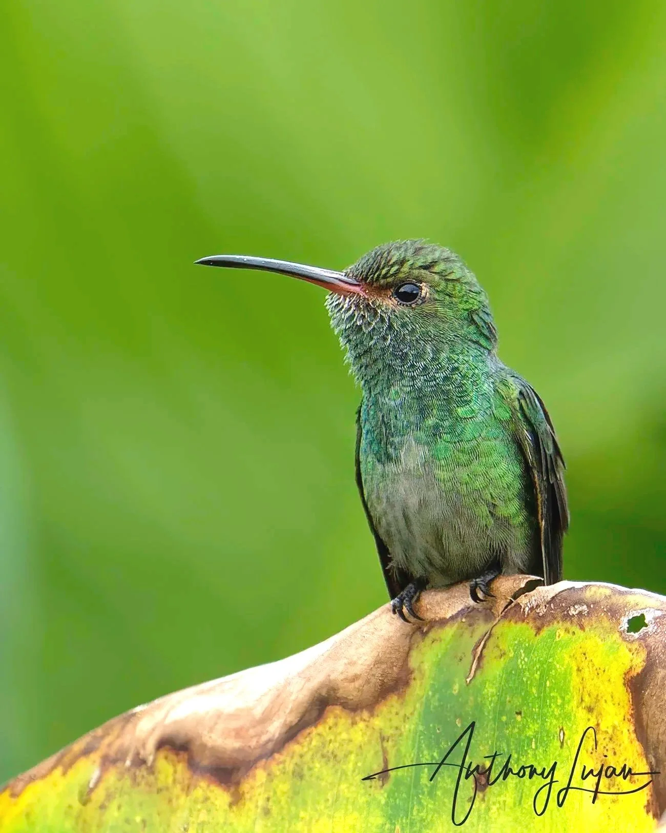 These individuals belong to the subspecies fuscicaudata, which ranges across northern and western Colombia, including the Magdalena and Cauca valleys, and extends into western Venezuela. This form is consistent with the species' overall appearance but may show slightly darker tail tones and deeper green on the upperparts. Common in gardens, edge forest, and lowland tropical landscapes.