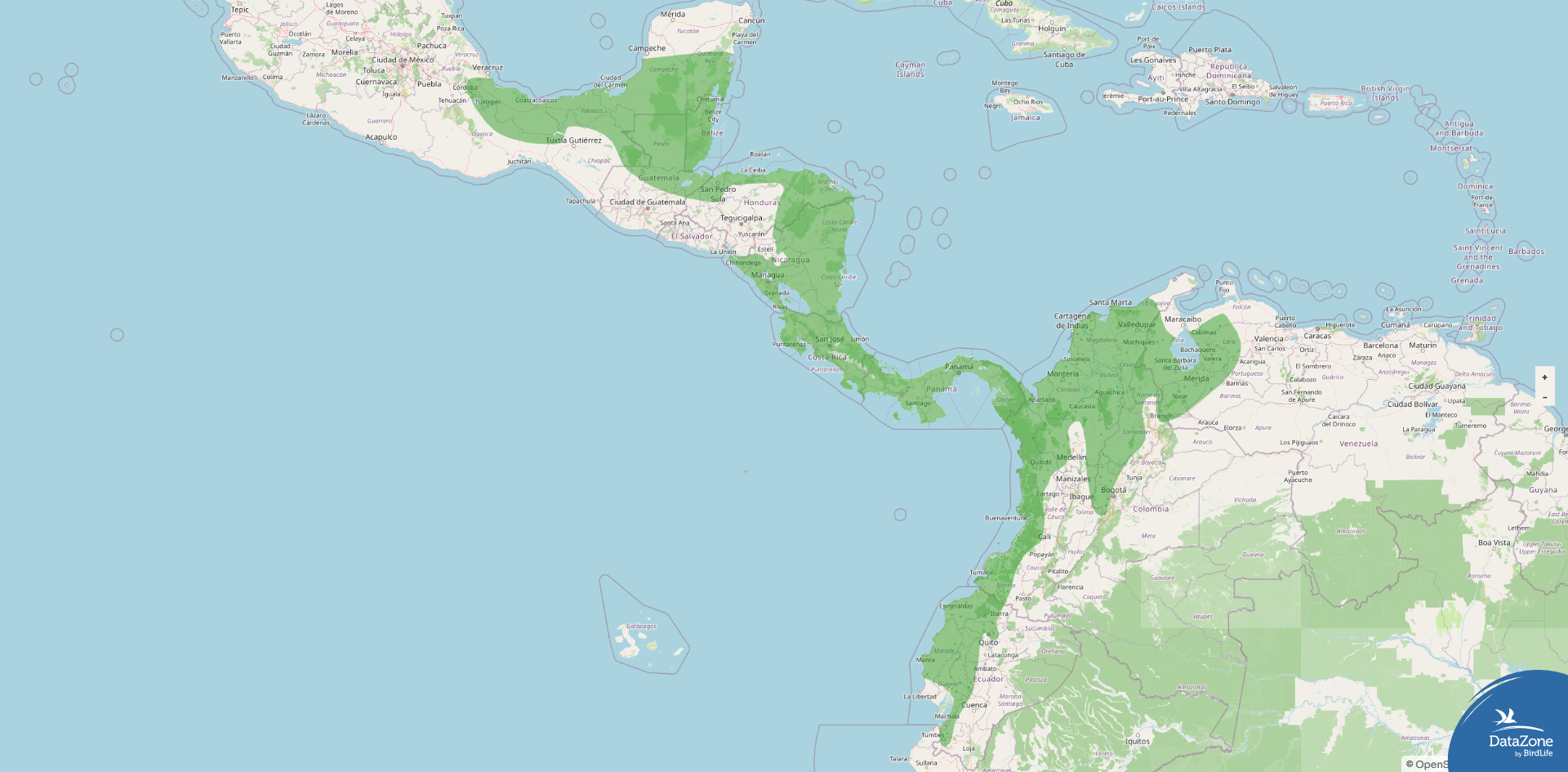Range: Eastern Mexico south through Central America to west‑central Panama, with additional populations in northern and western Colombia and western Venezuela, and localized forms on Isla Escudo de Veraguas.