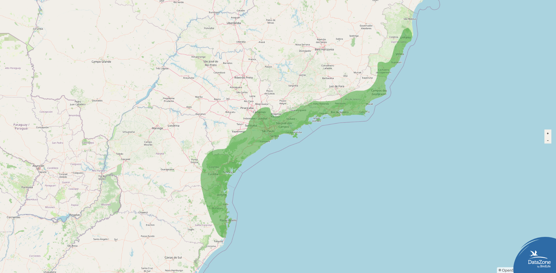 Range: Narrow band of Atlantic Forest in southeastern Brazil (Minas Gerais and Espírito Santo south to eastern Santa Catarina and northern Rio Grande do Sul)
