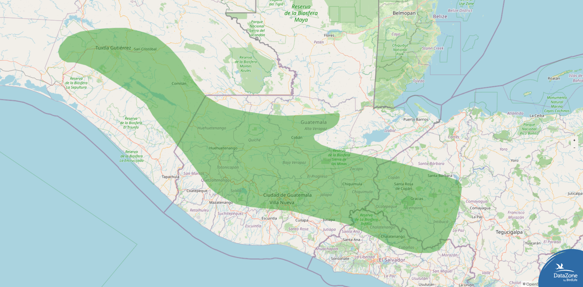 Range: Highlands of southern Mexico (Chiapas) south through Guatemala, Honduras, and El Salvador.