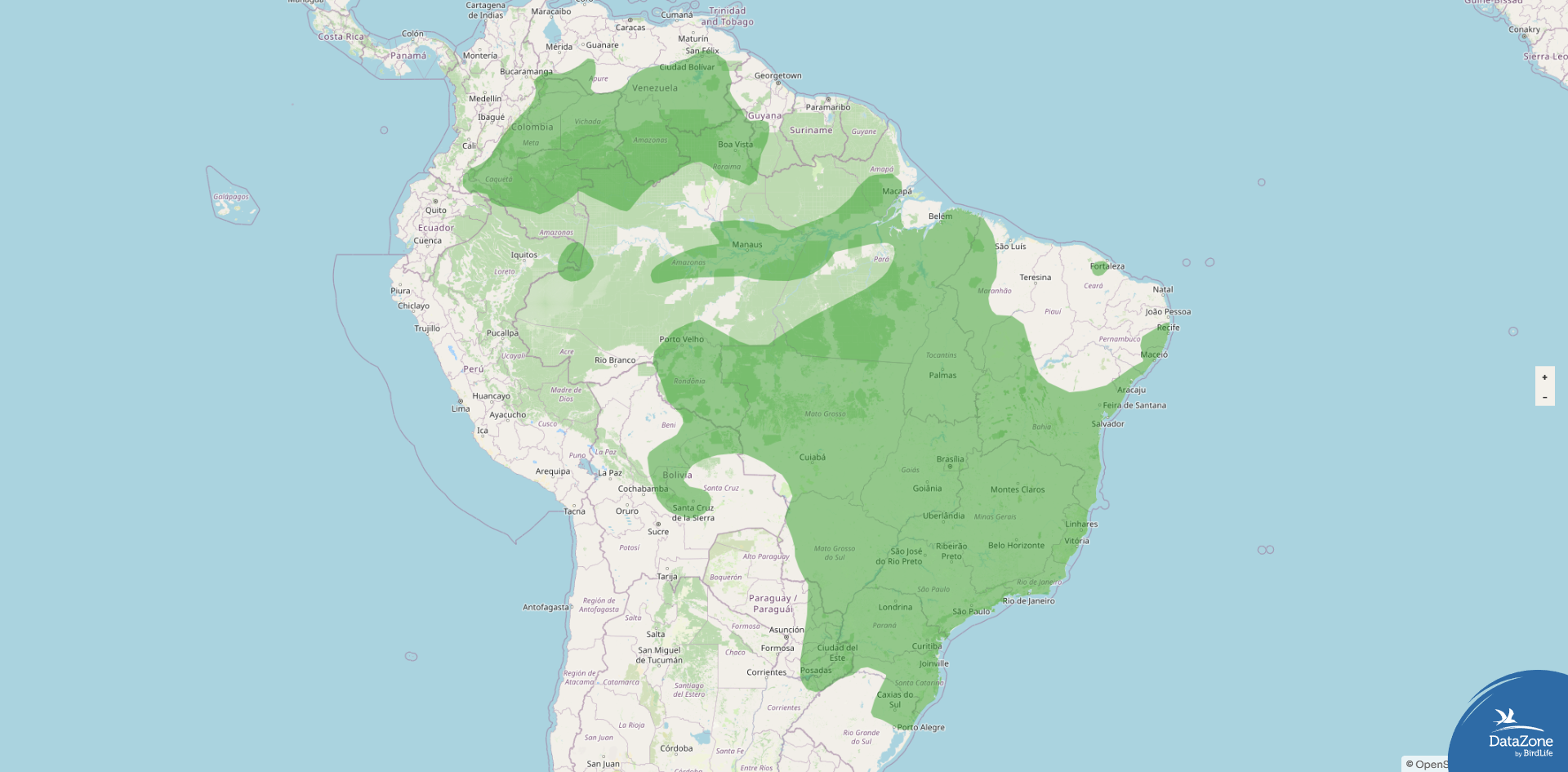 Range: Central and eastern South America, including Colombia, Venezuela, the Guianas margin, much of Brazil, northern Bolivia, eastern Paraguay, and far northeastern Argentina, largely avoiding the driest Caatinga and much of the central Amazon interior.