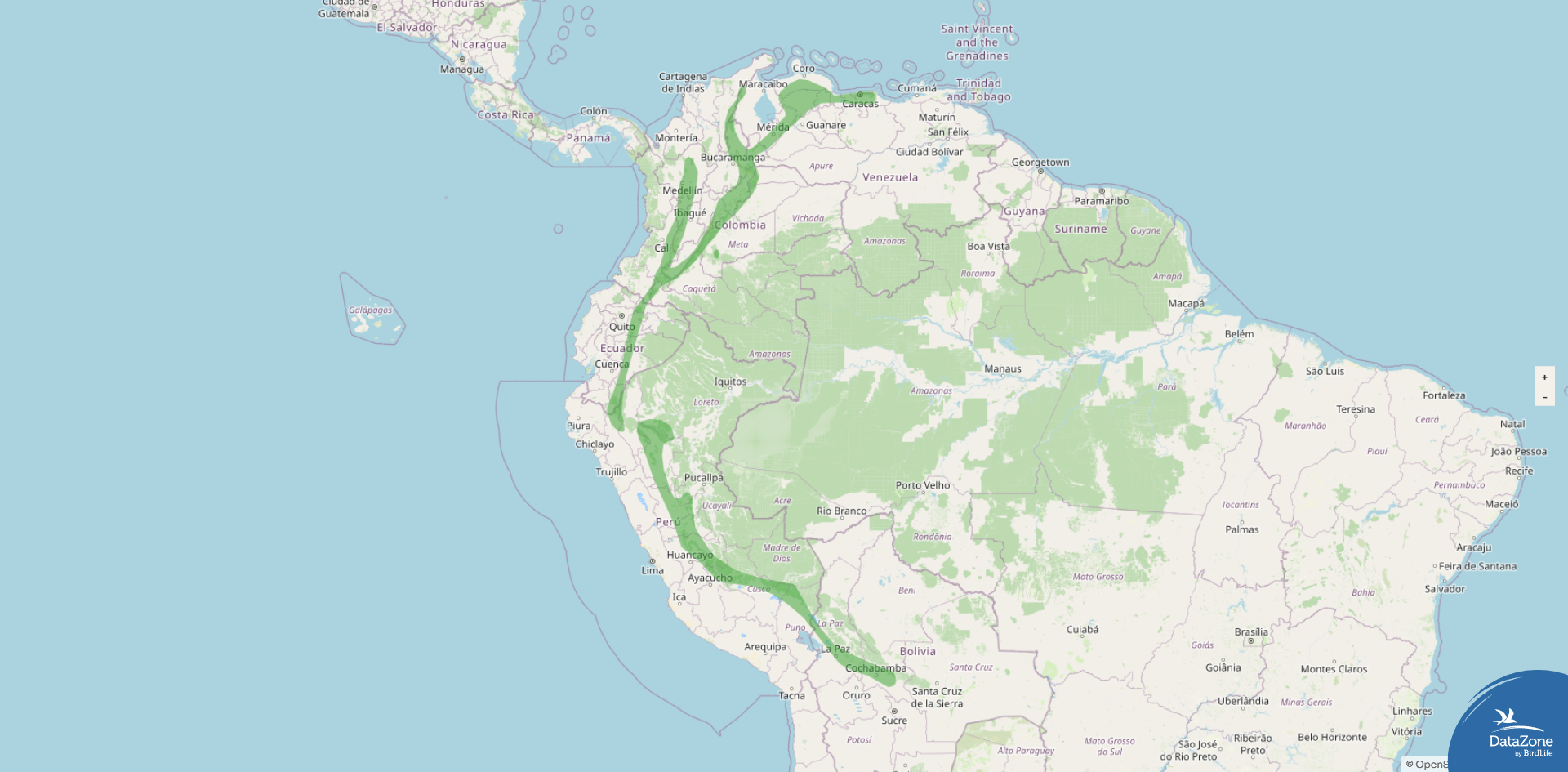 Range: Eastern Andes from the Venezuelan Coastal Range and western Venezuela south through Colombia and Ecuador into Peru and northwestern Bolivia