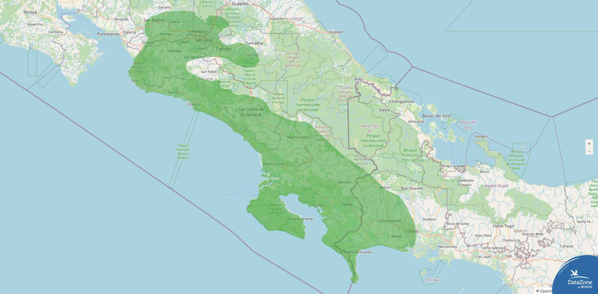 Range: Endemic to the Pacific side of southern Costa Rica (south to the southern zone and inland to the Cordillera Central) and the Pacific slope of far western Panama