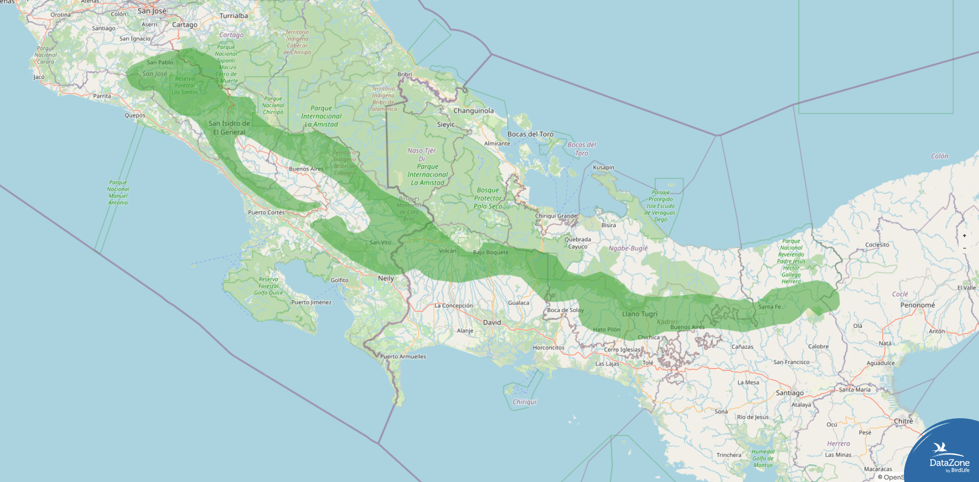 Range: Pacific slope of southern Costa Rica south into central Panama, with some occurrence on the Caribbean side of Panama.