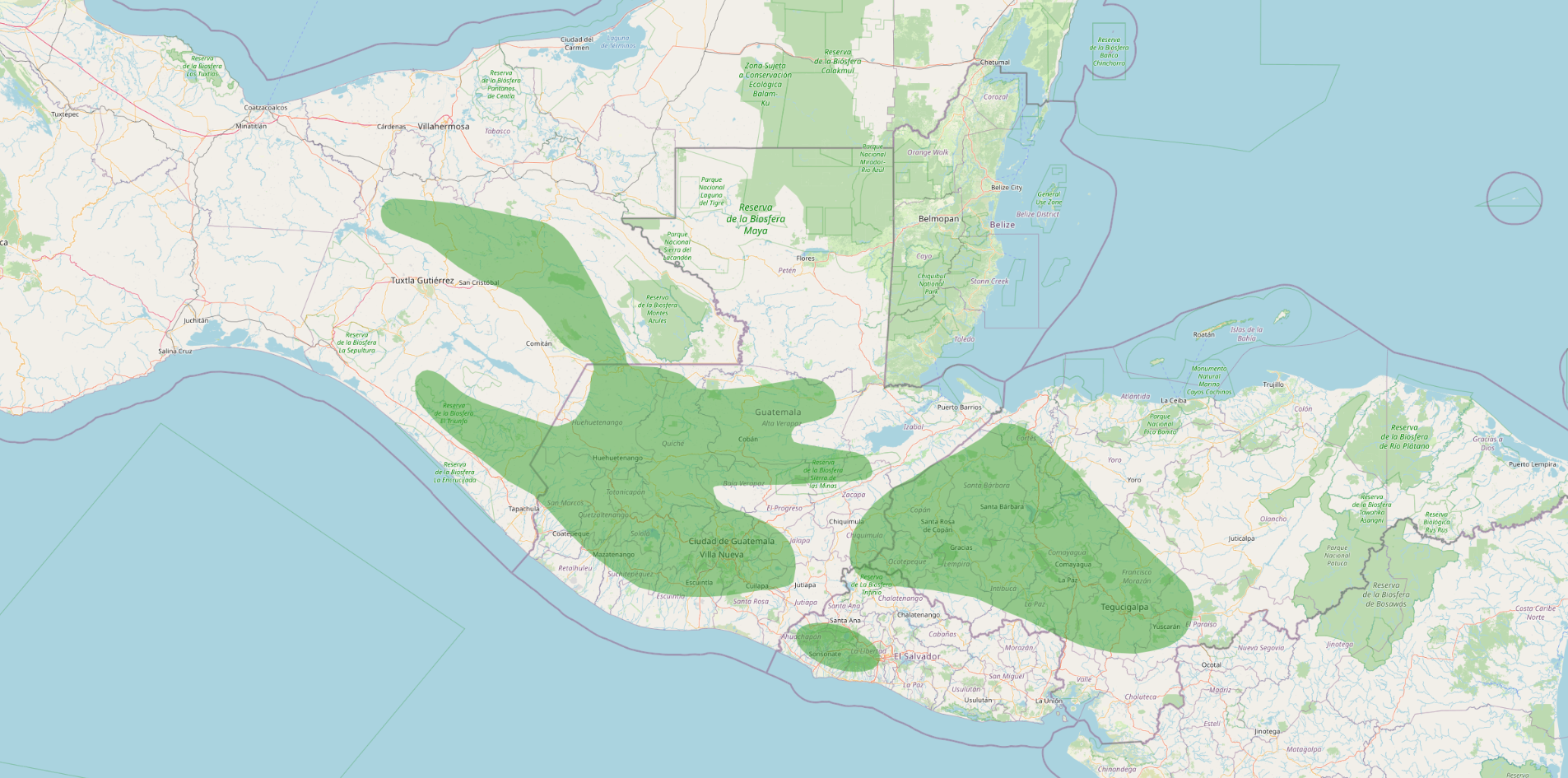 Range: Southern Mexico (Chiapas) south through Guatemala to northern El Salvador and western Honduras