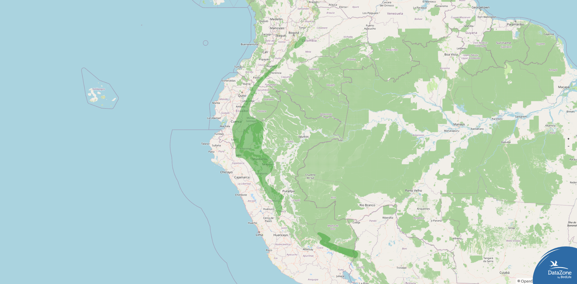 Range: Eastern Andes foothills of Colombia, eastern Ecuador, and eastern Peru (south to Puno), with at least one record from northern Bolivia