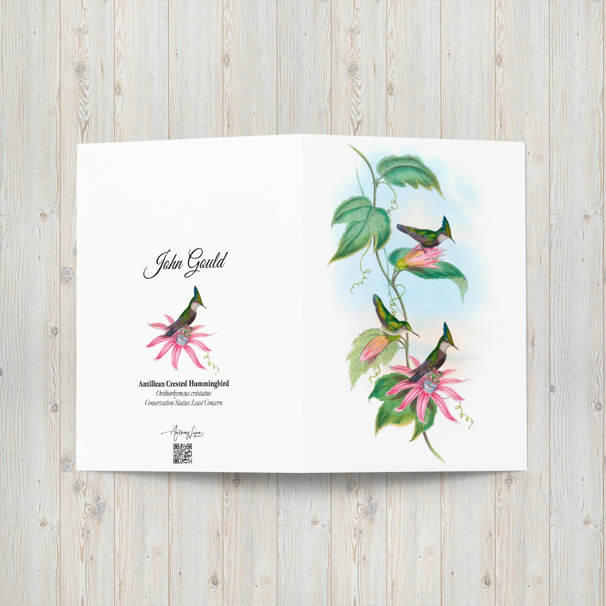 Each card features a high-quality reproduction of John Gould’s original artwork, capturing the delicate details and vibrant colors of each hummingbird species.