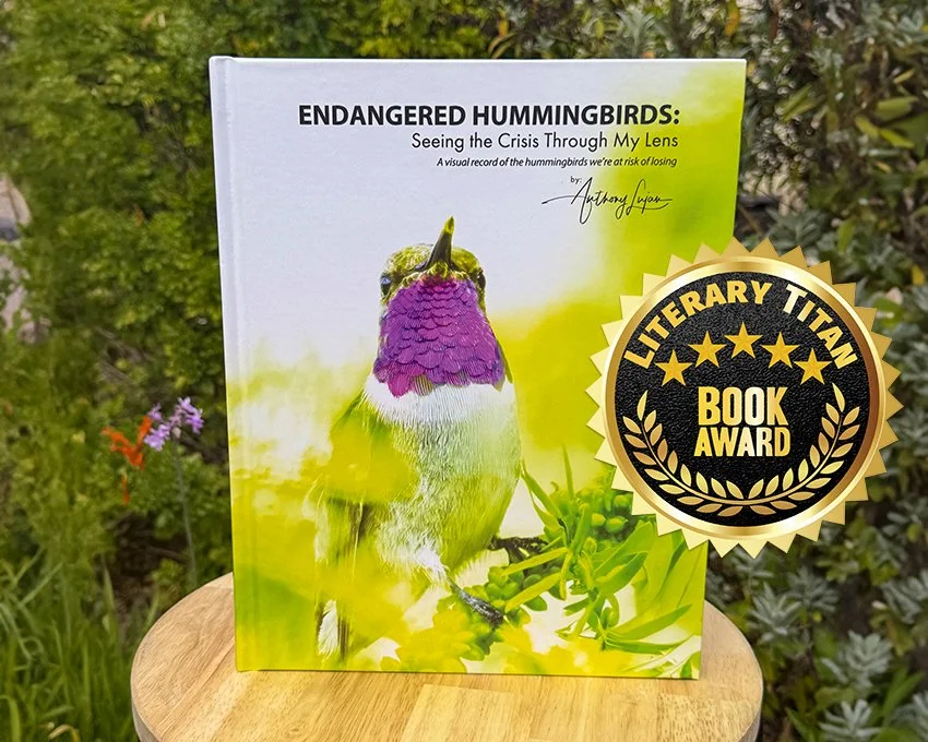 I’m honored to share that Endangered Hummingbirds: Seeing the Crisis Through My Lens has received its third award from the Literary Titan Book Award in Environment.